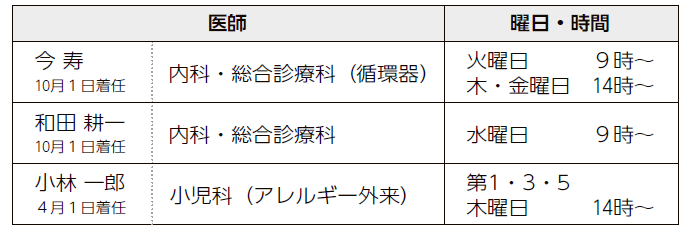 10月から内科・総合診療科および小児科の診療体制を強化しました。
