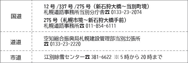 ・日曜日は隔週休みです。詳細は、本紙掲載の二次元コード(江別市雪情報総合案内)からご確認ください