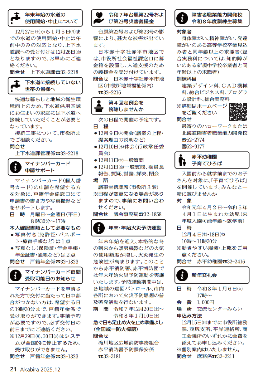 くらし 広報あかびら 令和7年12月号 P.21 20/25 前の記事 次の記事 発行日 : 2025年12月01日 自治体名 : 北海道赤平市 広報紙名 : 広報あかびら 令和7年12月号 Tweet シェアする 広報あかびら 令和7年12月号 P.20 広報あかびら 令和7年12月号 P.22