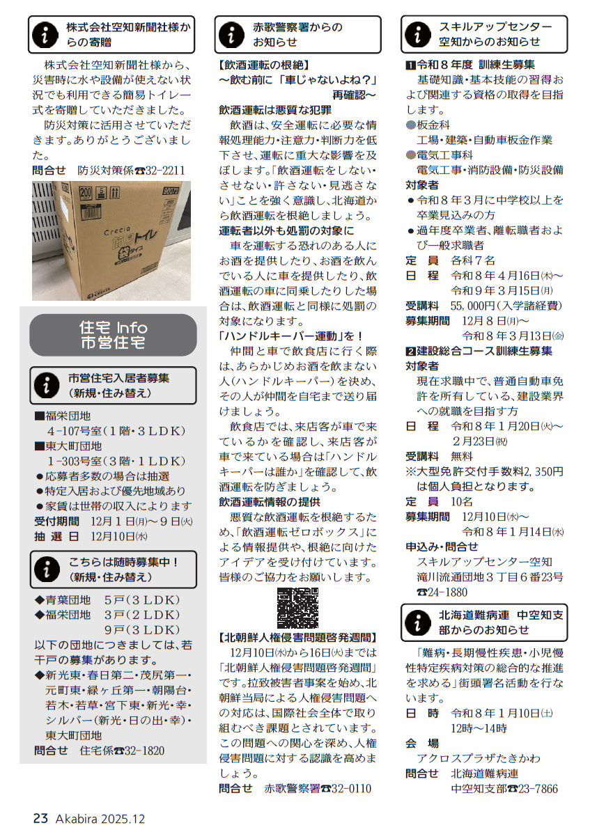 くらし 広報あかびら 令和7年12月号 P.23 22/25 前の記事 次の記事 発行日 : 2025年12月01日 自治体名 : 北海道赤平市 広報紙名 : 広報あかびら 令和7年12月号 Tweet シェアする 広報あかびら 令和7年12月号 P.22 広報あかびら 令和7年12月号 P.24
