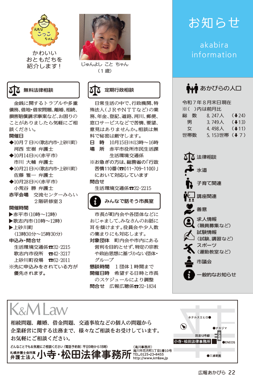 くらし 広報あかびら 令和7年10月号 P.22 21/27 前の記事 次の記事 発行日 : 2025年10月01日 自治体名 : 北海道赤平市 広報紙名 : 広報あかびら 令和7年10月号 Tweet シェアする 広報あかびら 令和7年10月号 P.20-21 広報あかびら 令和7年10月号 P.23