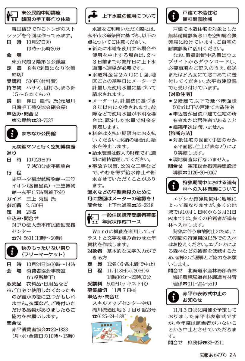 くらし 広報あかびら 令和7年10月号 P.24 23/27 前の記事 次の記事 発行日 : 2025年10月01日 自治体名 : 北海道赤平市 広報紙名 : 広報あかびら 令和7年10月号 Tweet シェアする 広報あかびら 令和7年10月号 P.23 広報あかびら 令和7年10月号 P.25