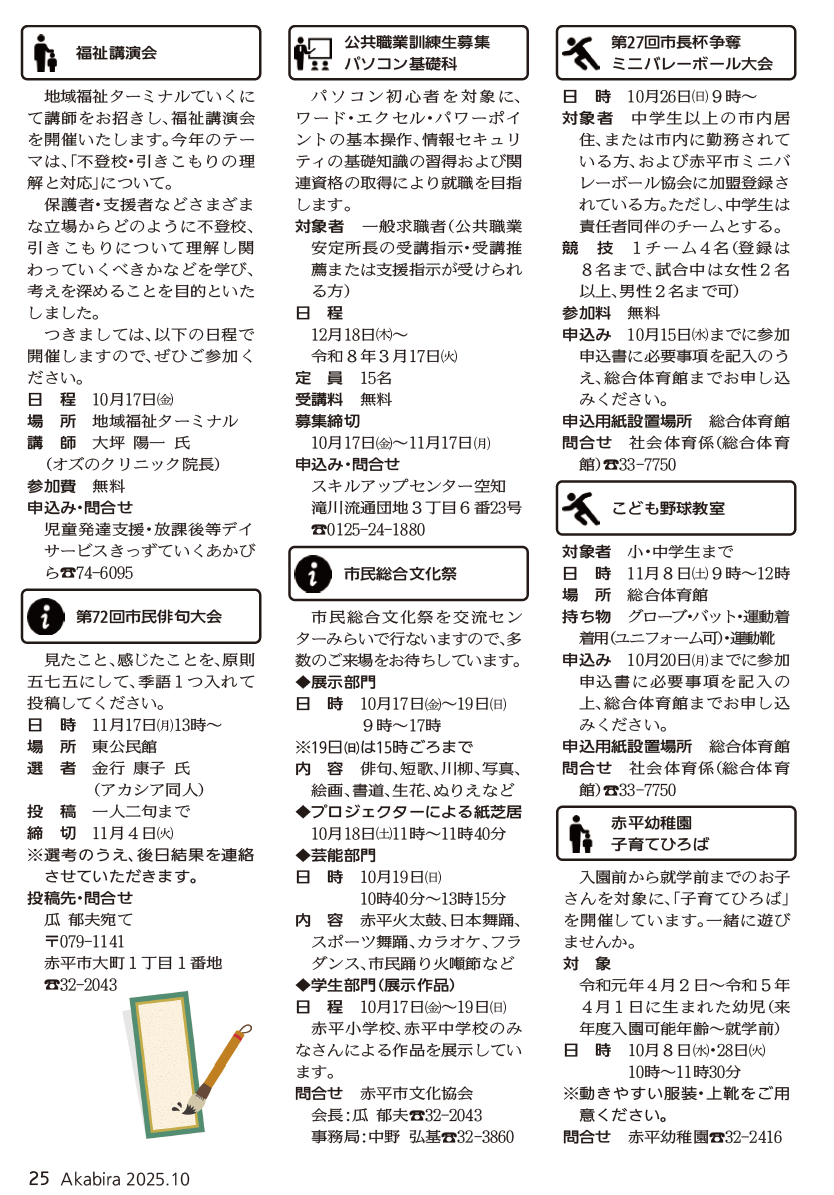 くらし 広報あかびら 令和7年10月号 P.25 24/27 前の記事 次の記事 発行日 : 2025年10月01日 自治体名 : 北海道赤平市 広報紙名 : 広報あかびら 令和7年10月号 Tweet シェアする 広報あかびら 令和7年10月号 P.24 広報あかびら 令和7年10月号 P.26