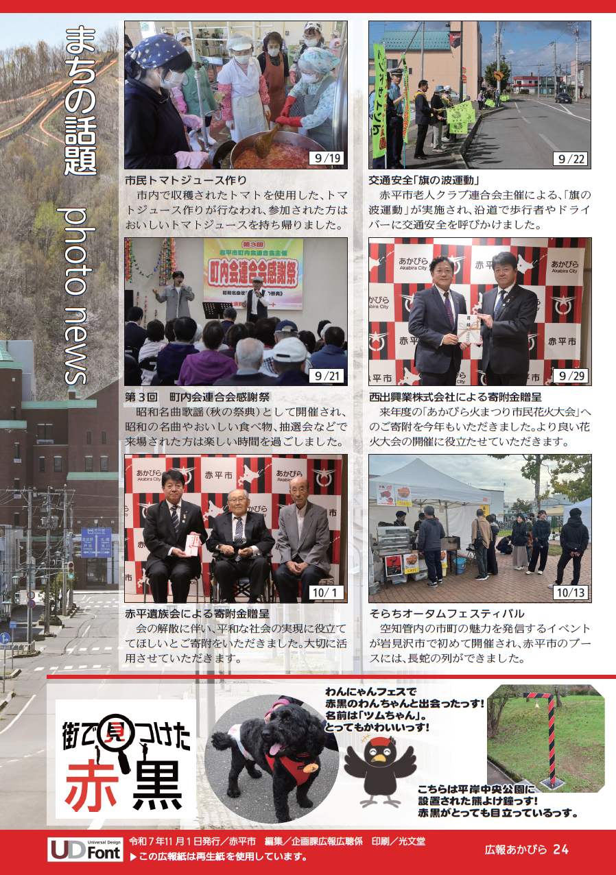 くらし 広報あかびら 令和7年11月号 P.24 23/23 前の記事 発行日 : 2025年11月01日 自治体名 : 北海道赤平市 広報紙名 : 広報あかびら 令和7年11月号 Tweet シェアする 広報あかびら 令和7年11月号 P.23