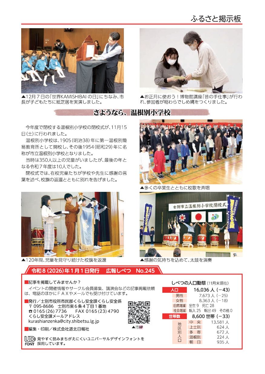 その他 広報しべつ 令和8年1月1日号(No.245号)P.22 22/22 前の記事 発行日 : 2026年01月01日 自治体名 : 北海道士別市 広報紙名 : 広報しべつ 令和8年1月1日号(No.245号) Tweet シェアする 広報しべつ 令和8年1月1日号(No.245号)P.21
