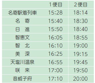 帰宅時間帯に名寄駅着普通列車からの美深町・音威子府村方面への接続バスの実証運行を行います。