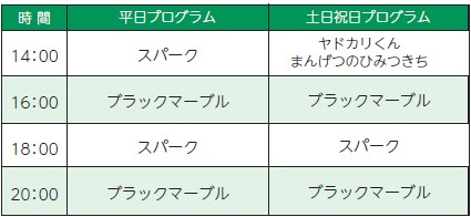 ・5日(金)〜7日(日)、12日(金)〜14日(日)、19日(金)〜21日(日)各日18時頃〜21時30分