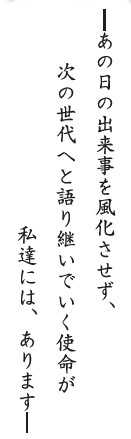 戦後80年の節目を迎え、当時のことを知らない若い世代も多くなってきました。過去の惨禍を繰り返さないために、平和を尊重する気持ちを持ち続けることが必要です。