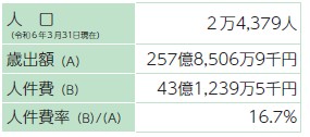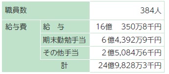 期末・勤勉手当(賞与)支給率や給料の引き上げなどがあり、人件費全体では令和5年度より約4億251万円増加しました。1人当たりの職員給与費は、約650万円です。