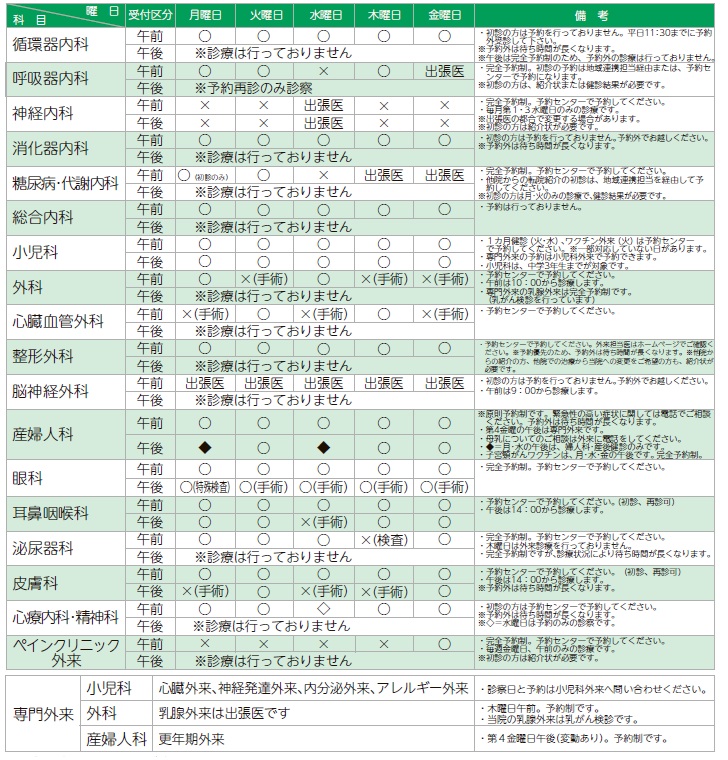 ・医師の出張などにより、診療体制が変更になる場合があります。