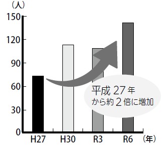 本市でも、令和6年末時点で142人の外国人が暮らしていて、平成27年に比べ、約2倍になりました。