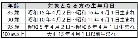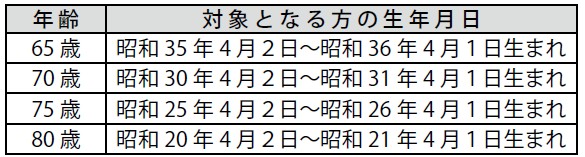 (1)令和7年度中に下記の年齢に達する方(対象者には4月に案内を送付しています)