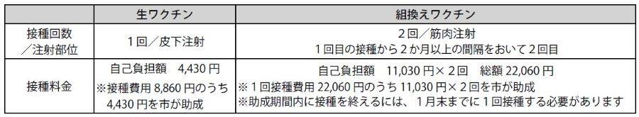 ワクチンの種類と回数:帯状疱疹ワクチンは生ワクチンと組換えワクチンのどちらかを選択し接種します。
