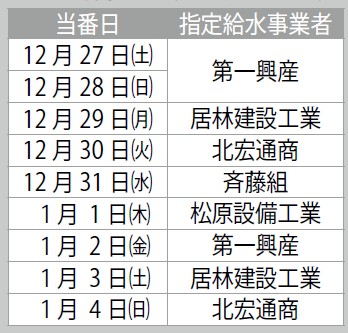 ■年末年始の水道修繕事業者
