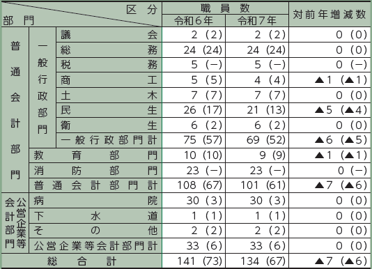 ※( )内は、一般行政職の職員数(再任用職員を含む)です。