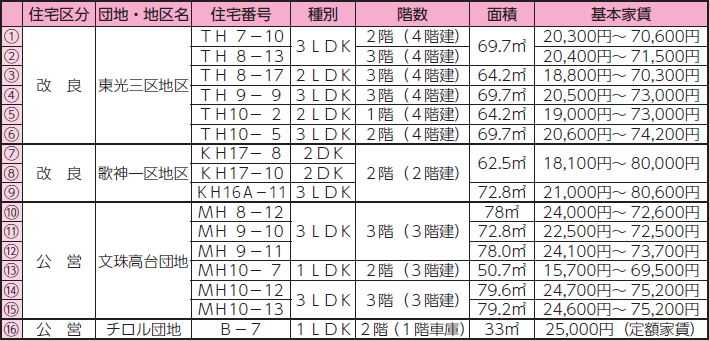 提出書類:入居申込書、入居者全員の本籍記載の住民票、所得証明書、納税(非課税)証明書