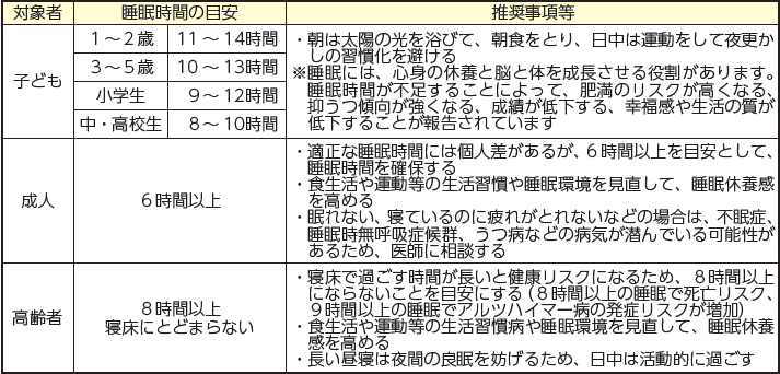 ■睡眠の目安時間等について