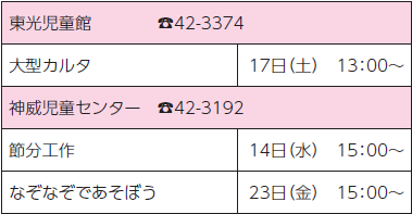 東光児童館・神威児童センターの休館日は、1日(木)、2日(金)、3日(土)、4日(日)、5日(月)、12日(月)、13日(火)、19日(月)、26日(月)です。