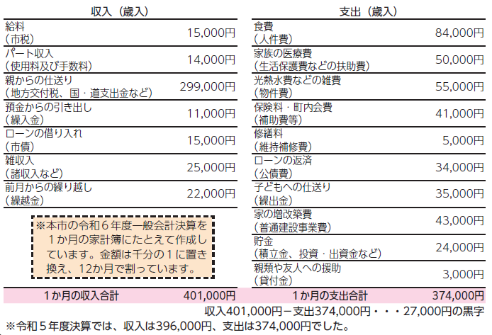 ▽表4 令和6年度一般会計決算 1か月の家計簿で例えると…