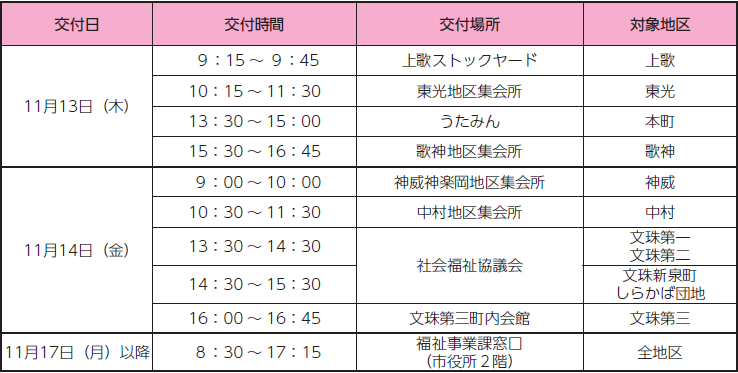 市では、前年同様、暖房用灯油価格が高止まりしていることから、令和7年11月1日以降引き続き市内に居住し、市民税非課税、市民税均等割のみ課税の高齢者世帯等に対し在宅福祉の向上を図るため、暖房用灯油代の一部を助成します。該当すると思われる世帯は、今月号の折込チラシ(申請書)及び必要書類等を持参し、各地域特設会場または福祉事業グループにて手続き願います。