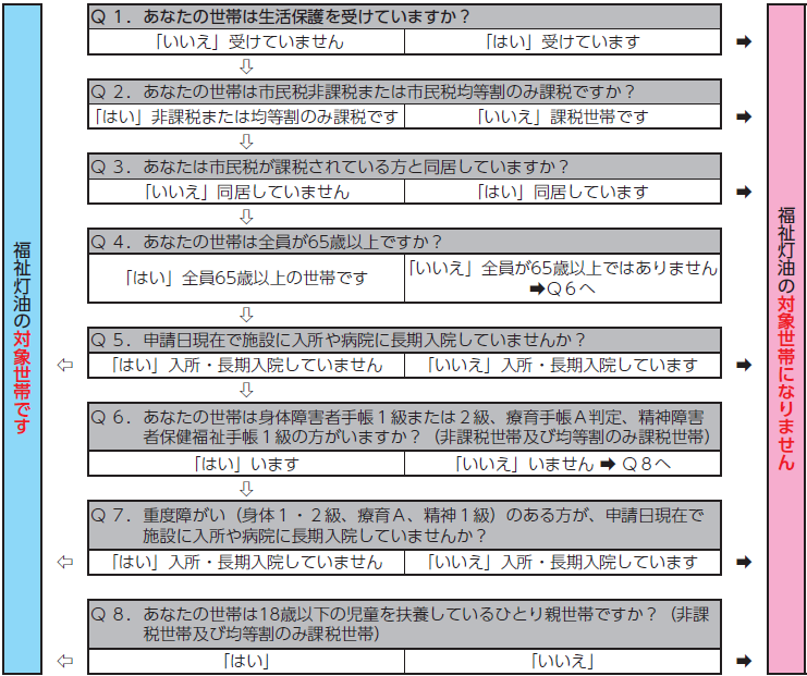 ※指定の受付日に申請できない場合は、市役所2階福祉事業課窓口で11月17日から2月27日までの間、随時受け付けます。また、対象世帯かどうか簡易的に確認ができる「フロー図」を掲載していますのでご確認ください。