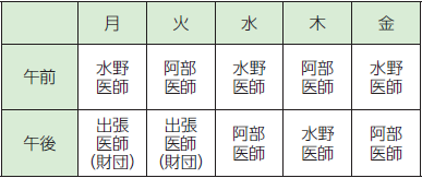 ※出張医師の氏名は病院入口と待合室に掲示しています。