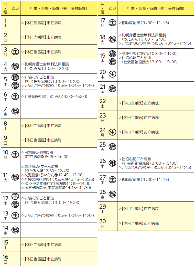 ※掲載している行事等が変更・延期・中止になる場合がありますので、事前に確認をお願いします。