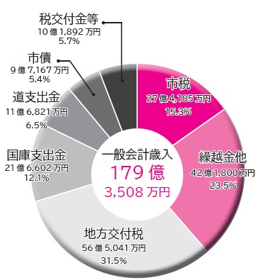 一般会計の当初予算額は153億5,000万円で、「第6次富良野市総合計画」中期計画に掲げる施策の着実な推進に努めるとともに、持続可能な財政基盤を維持するため、事業の優先順位や事業内容の精査により限られた財源の重点配分を図りました。また、物価高騰対策や賃金上昇、地域医療確保対策など必要な経費により歳入歳出にそれぞれ29億9,992万円の増額補正が行われ、令和5年度からの繰越額8億12万円を合わせ予算現額は191億5,004万円になりました。決算額では歳入総額179億3,508万円、歳出総額176億2,956万円で、その差引額から翌年度へ繰越すべき財源4,059万円を控除した実質収支額は、2億6,493万円で黒字決算となりました。