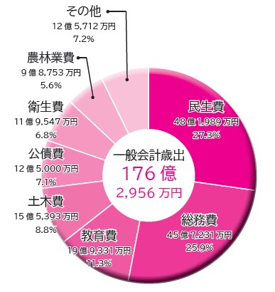 教育費…小中学校などの管理運営や施設整備、生涯学習の推進などに使われた費用