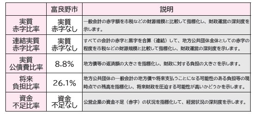 市の財政状況を表す健全化判断比率および資金不足比率は、いずれの指標も基準を下回っており、健全財政が保たれています。今後も将来を見据え健全な財政運営に努めていきます。