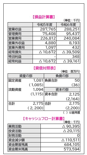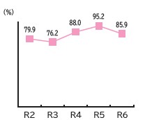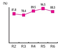 経営の健全性を示す経常収支比率は、88.3%となり、前年度より8.2ポイント減少しました。また、営業収支比率も85.9%となり、前年度より9.3ポイント減少しました。総収益は増えたものの、資材高騰や物流コスト、人件費の増加などの影響により、総費用が増加しています。引き続き経常経費の削減に努めるとともに経営の健全化を目指します。