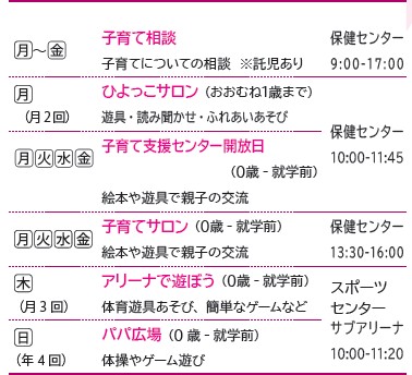 幼稚園・保育園に入園されているお子さんも、下記の日程で子育てサロンを利用することができます。