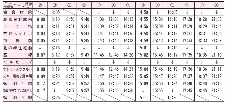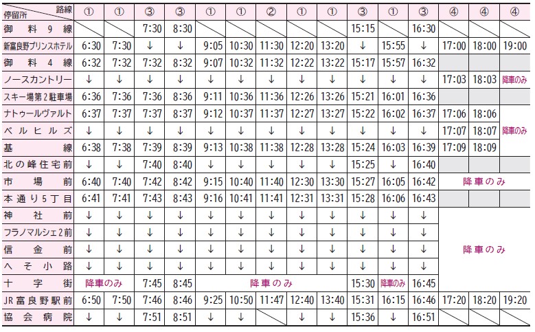 ※新富良野プリンスホテル発19:00便は12/19~2/28のみ運行