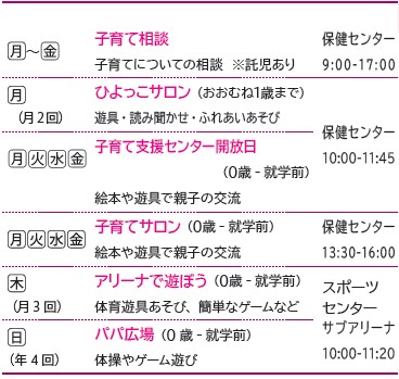 問合せ:子育て支援センター