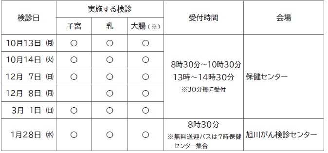 ※大腸がん検診は、40歳以上の方が対象です。検診料金は1,000円です。(市民税非課税世帯の方は無料)