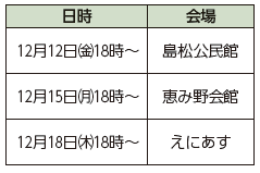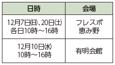 ・12月6日(土)、13日(土)、14日(日)各日7時~20時