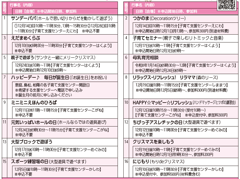 15~16…子育て支援センターかしわ【電話】080-8292-2709