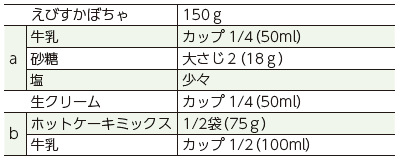 (1)(かぼちゃあん)かぼちゃを一口大に切り、柔らかくなるまでレンジで加熱し(600w3~5分)、熱いうちにフォークなどで皮を取り除いてつぶす。aをていねいに混ぜ合わせ、冷蔵庫で冷やしておく。