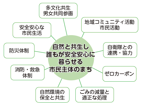 人と人とのつながりを基盤に、安全で快適な都市基盤が整った、誰もが「ここで暮らしてよかった」と思える、「包摂都市※」を目指します。