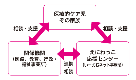 えにわっこ応援センターでは、医療的ケア児の新生児医療などの医療機関から在宅への生活拠点の移行、就園に向けてのサポートなどを行っています。