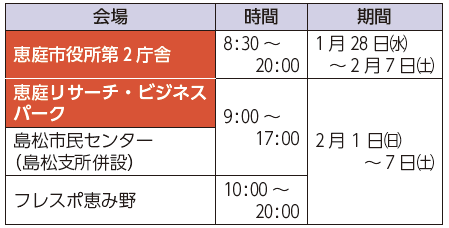 ※駐車場は、恵庭市役所本庁舎駐車場を利用ください