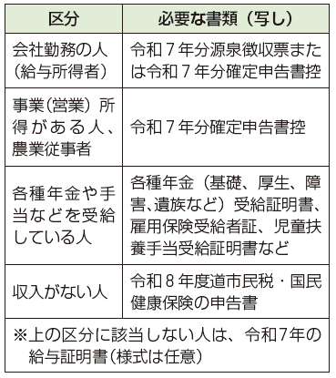 必要書類:次のとおり(生計を共にする全員分必要)