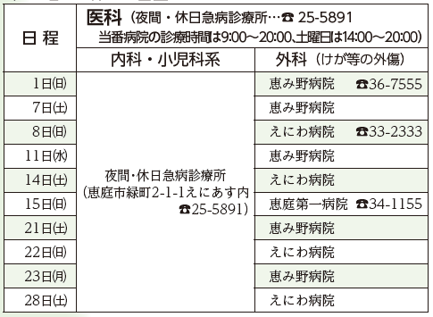 ■土曜日・休日当番医