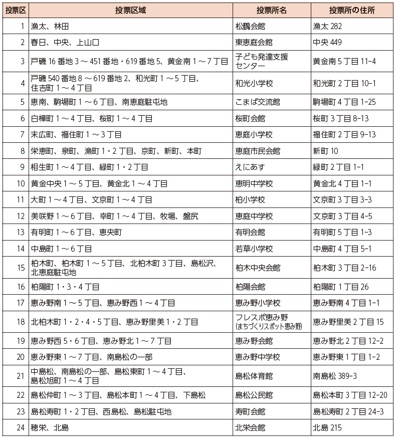 ・10月24日以降に市内で住所が変わった人は、前住所地の投票所で投票することになります