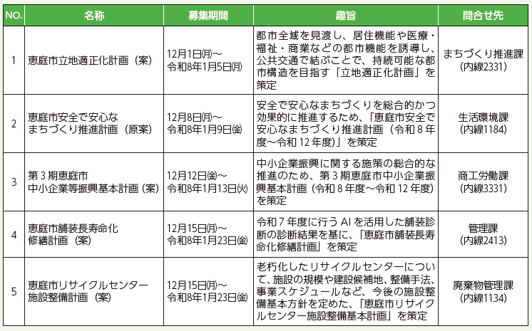 くらし 〔事前予告〕~パブリックコメント募集~ 皆さんの意見を募集します 12/45 前の記事 次の記事 発行日 : 2025年11月01日 自治体名 : 北海道恵庭市 広報紙名 : 広報えにわ 令和7年11月号 Tweet シェアする 暮らしのお知らせ「催し」(2) 暮らしのお知らせ「お知らせ」(1)