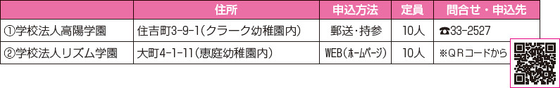 ・申込期間終了後も定員に達していない場合は申し込み可能。詳しくは各事業所に問い合わせください