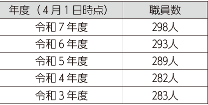 ※市長・副市長・教育長・西いぶり広域連合などへの派遣職員を除いた人数です