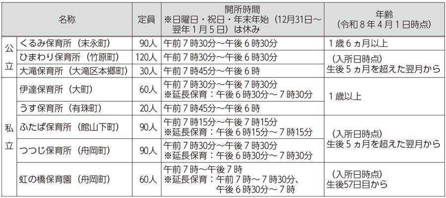 問合せ:子育て支援課保育係(市役所1階(6)番窓口)