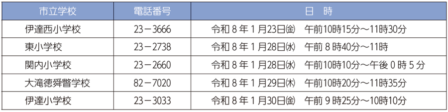 来年4月に市立学校に入学されるお子さんを対象に、入学予定の学校で1日体験入学と保護者説明会を行います。対象の保護者の方には、市教育委員会から案内を送付します。