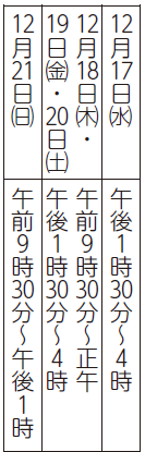 ※12月15日(月)〜21日(日)、各子育て支援センターは準備・運営のため閉鎖します